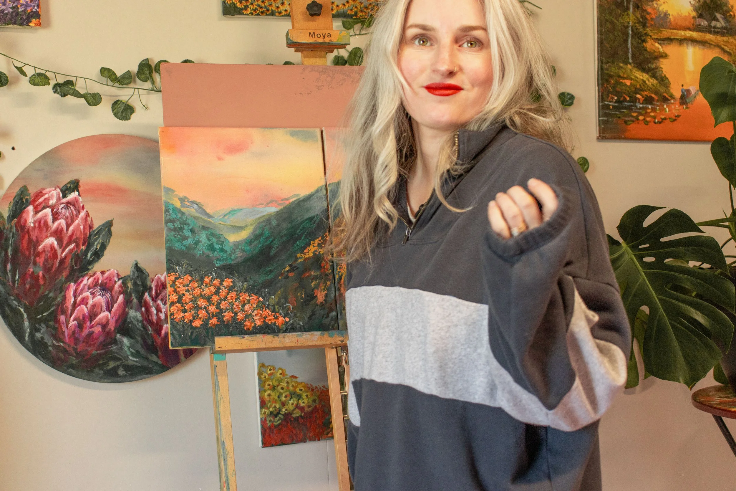 My work explores the balance between joy and struggle, using bold colors and layered textures to reflect resilience and vulnerability. Living with chronic pain deepens my awareness that beauty and hope can emerge in any circumstance. Inspired by meditation, gratitude, and my Australian roots, I create paintings that invite pause, reflection, and connection—reminders that healing, strength, and joy are woven together, even in life’s most challenging moments.